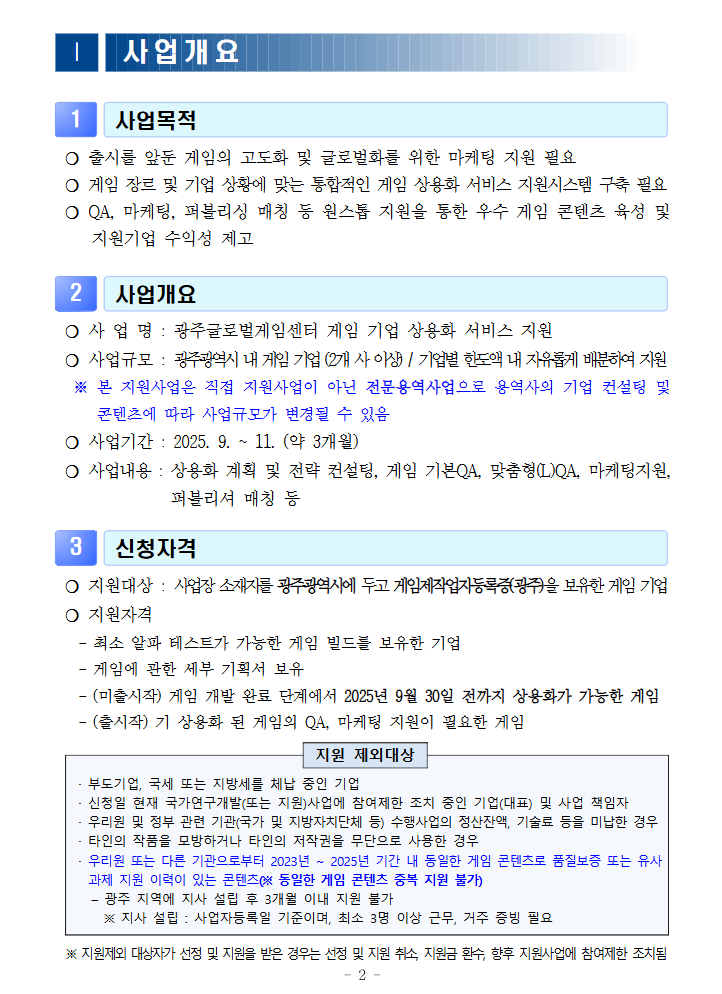 – (미출시작) 게임 개발 완료 단계에서 2025년 9월 30일 전까지 상용화가 가능한 게임