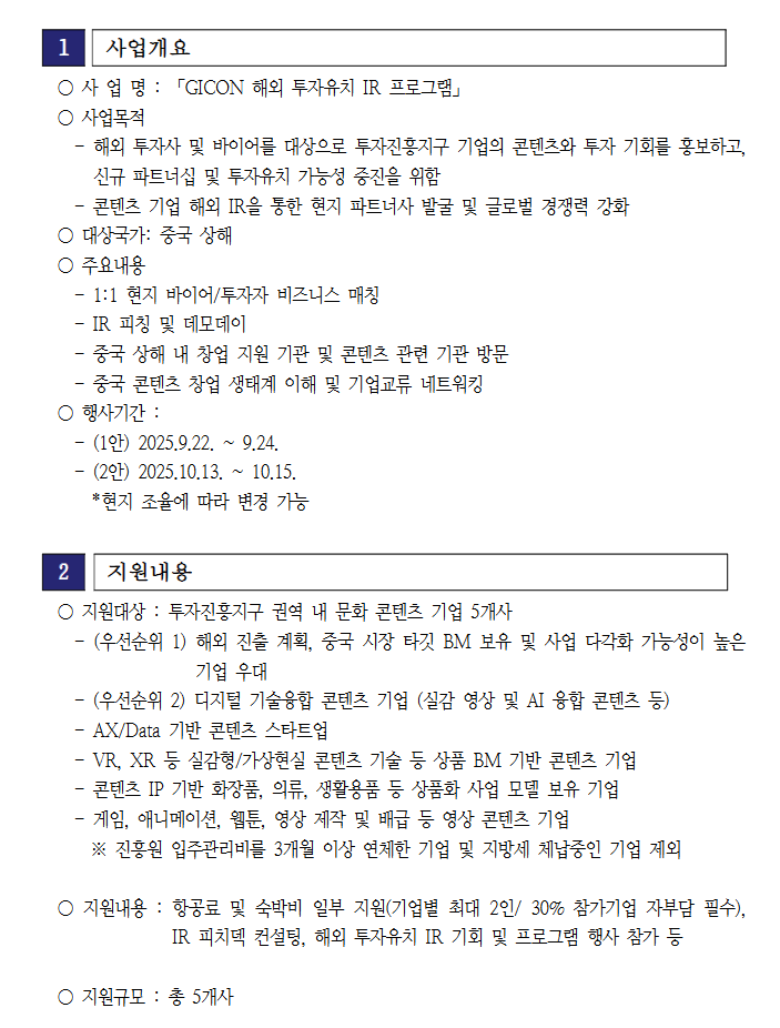 투자진흥지구 해외 투자유치 IR 프로그램 참여기업 모집 공고 자세히 보러가기 (Click)