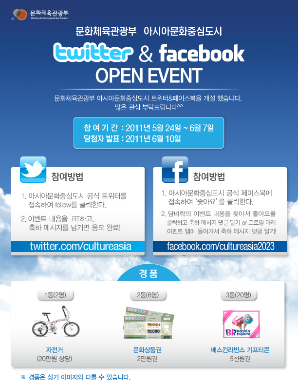 [이벤트] 트위터·페이스북 오픈 기념 이벤트 안내