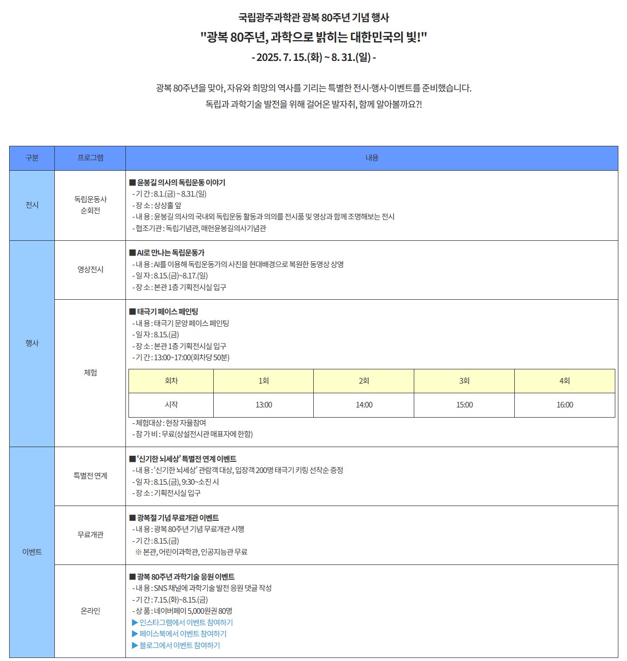 [국립광주과학관] 2025 광복 80주년 기념 행사 자세히 알아보기 (Click)